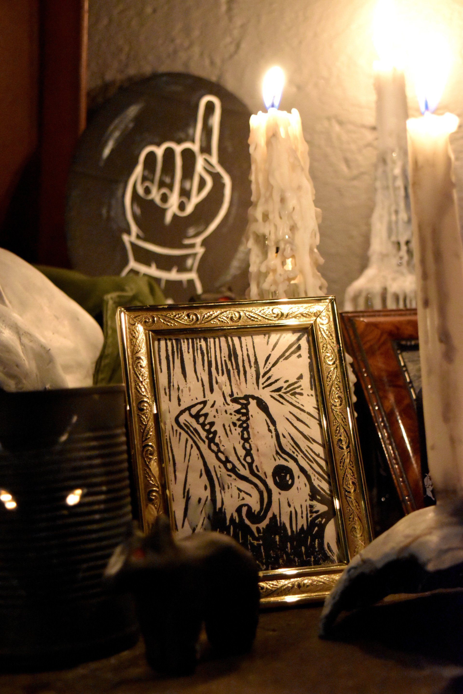 The strange and unusual have always appealed to me. As a small child, I would hear of odd creatures and bizarre events, and now, as an adult, I am able to discover and create these tales for myself from what lurks in the very corners of my brain. This inspires my artwork, which frequently incorporates themes such as death and nature, with inherent links to mental health. I explore these themes in a range of artistic media, primarily through illustration, sculpture and lino cut printing. However, as an experimenter by nature, I am often trying out new materials and techniques in order to further my practice and satisfy my curiosity. My artwork often results in a collection of objects, those of my own design as well as ones that have been found, a carefully curated arrangement of vintage and macabre.